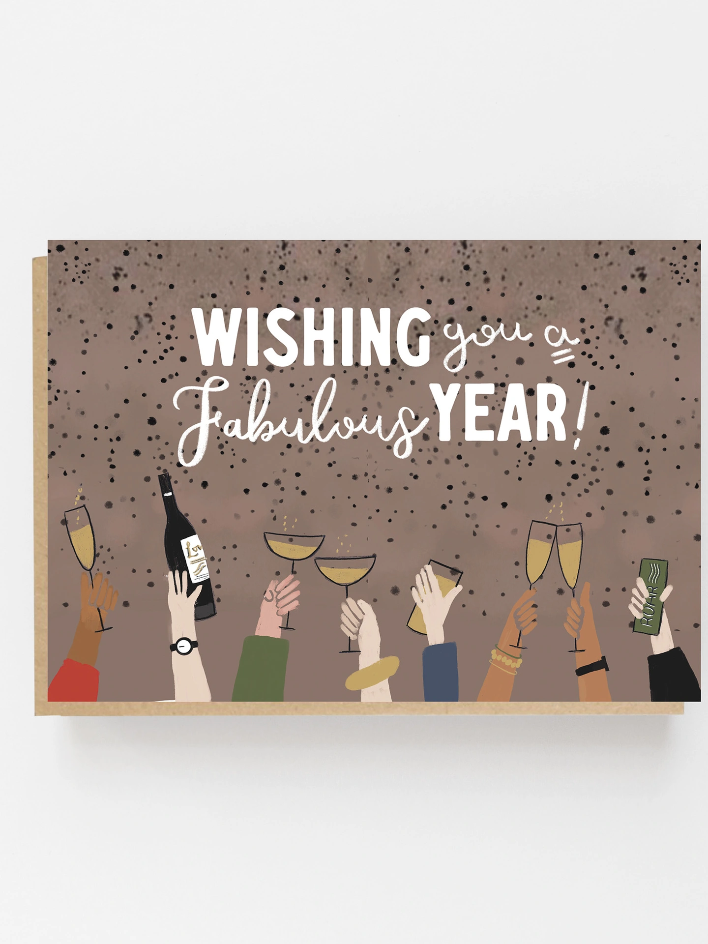 Wishing You a Fabulous Year Greeting Card lots pf people cheering and clinking glasses at New Year.