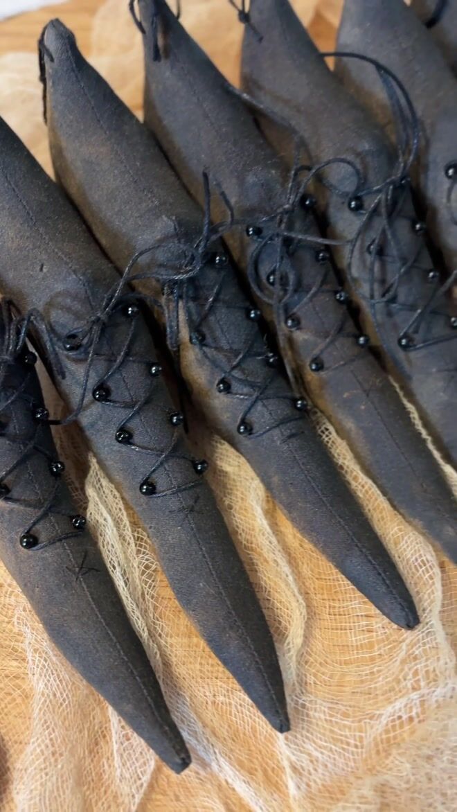 Tiny witches' shoes created and designed by Jane at The Olde Gingerbread House.
