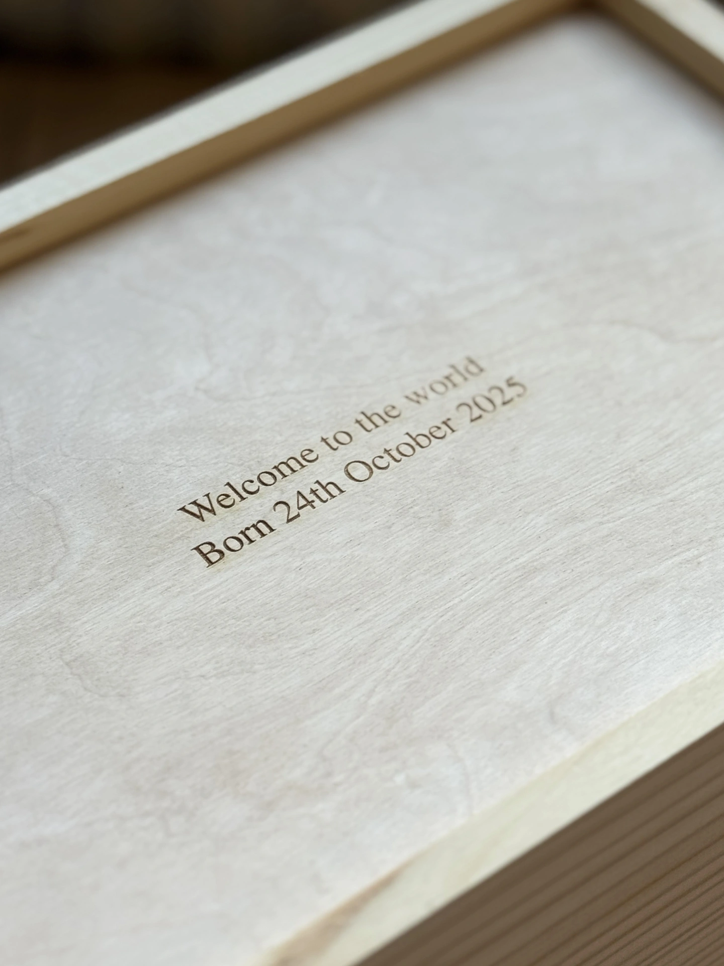 They are popular as baby keepsake boxes but we also get lots of requests for other uses. Sewing box, pet memory box, wedding box, Christmas eve box and general storage box.
