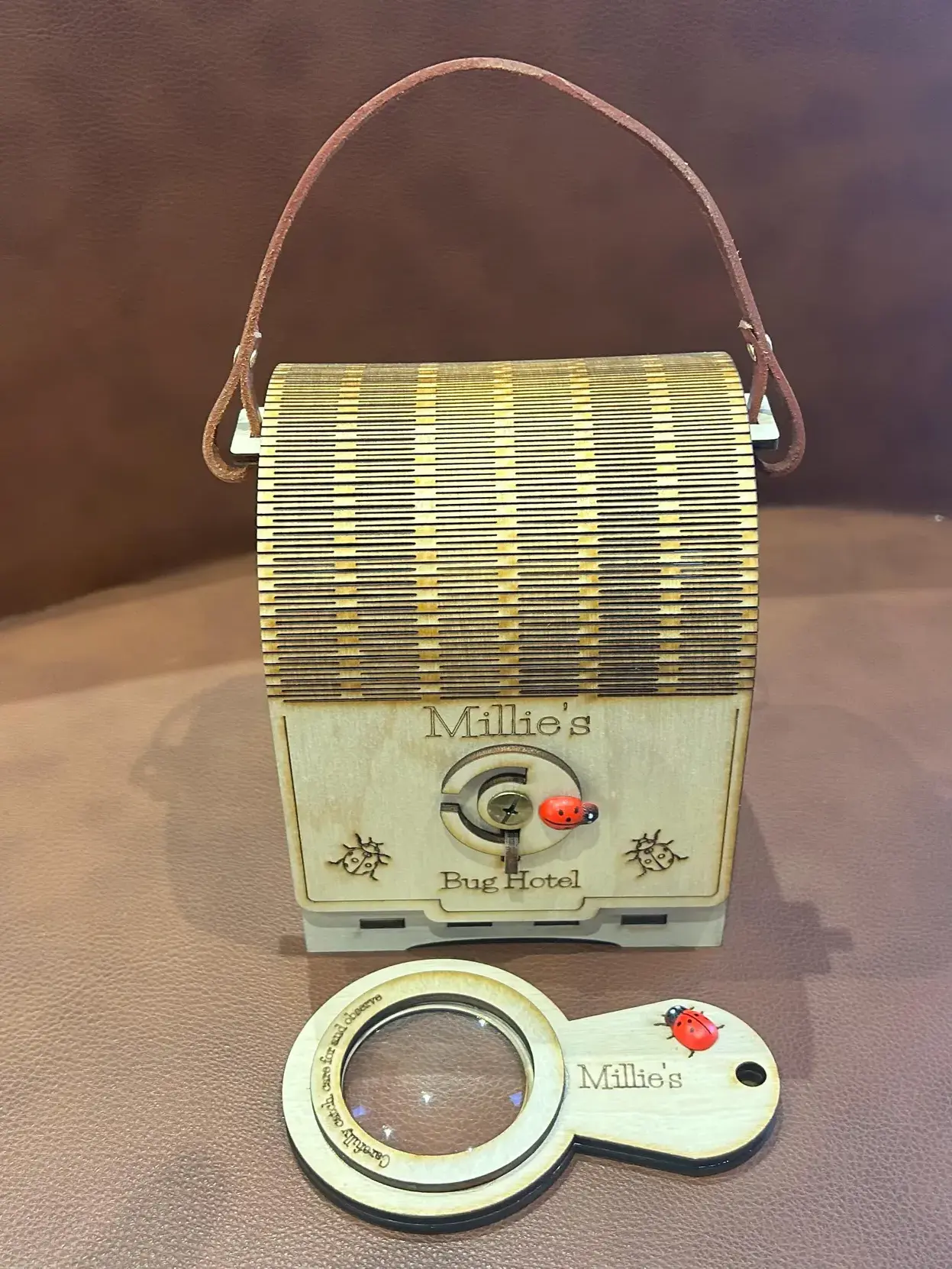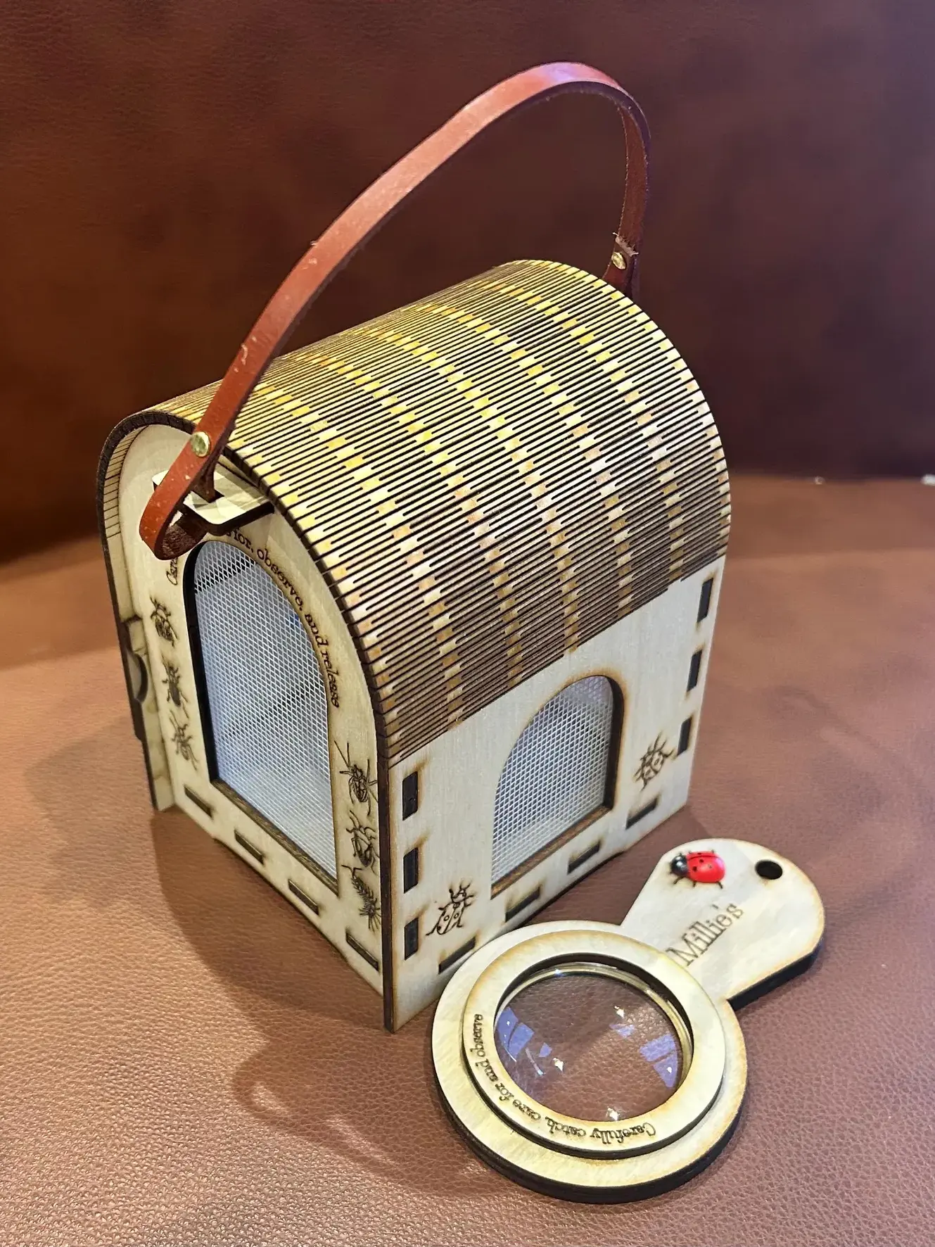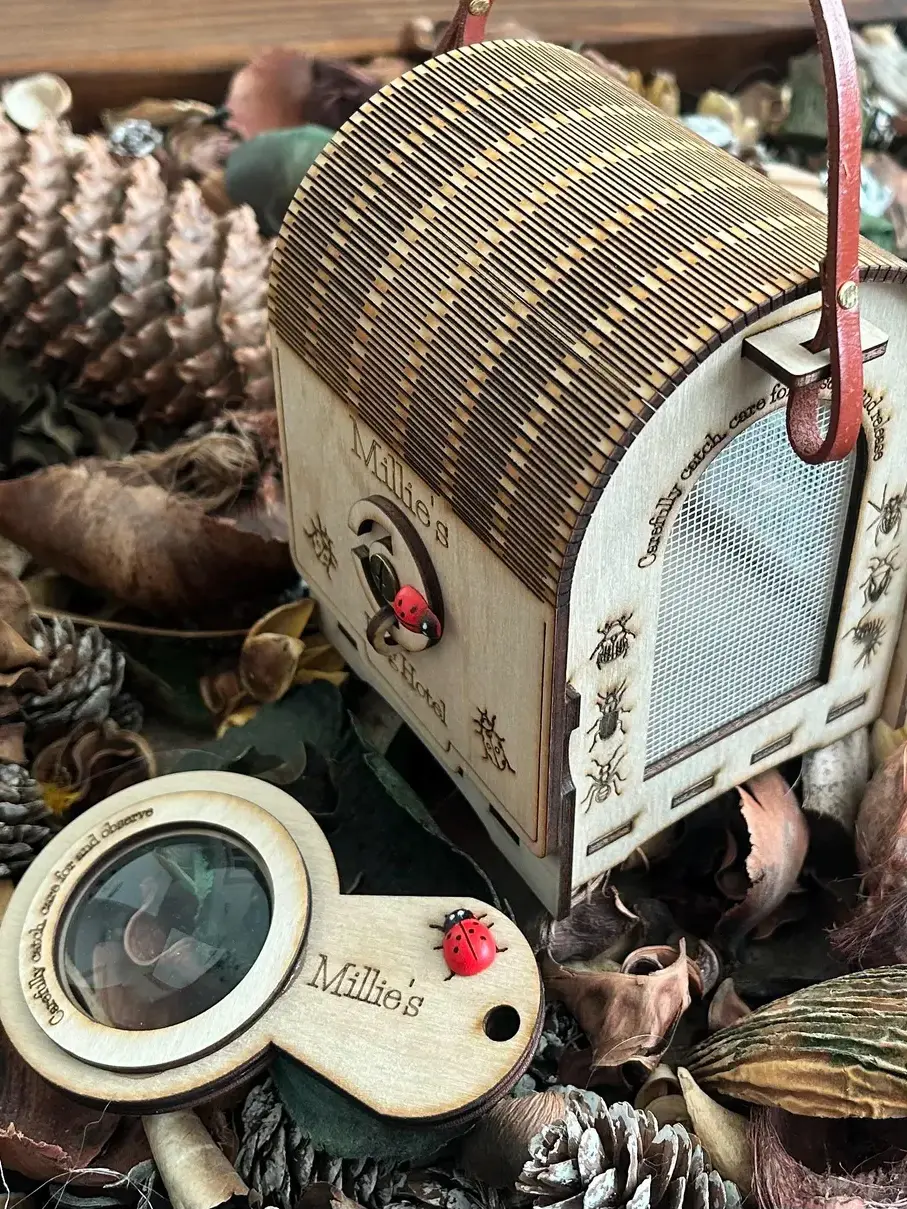 Step into the world of outdoor discovery with our wooden bug hotel toy, a beautifully crafted children’s insect house designed for curious little explorers. Perfect for forest school, Montessori nature study, and garden adventures, this charming critter box invites children to observe bugs safely and kindly. With breathable mesh windows, a sturdy leather handle, and a durable birch plywood frame, it’s the ideal outdoor learning toy for hands‑on exploration.