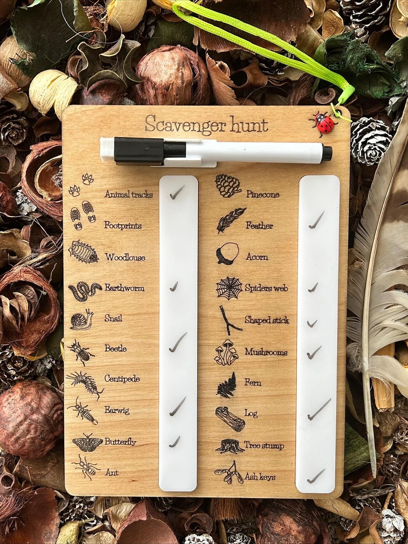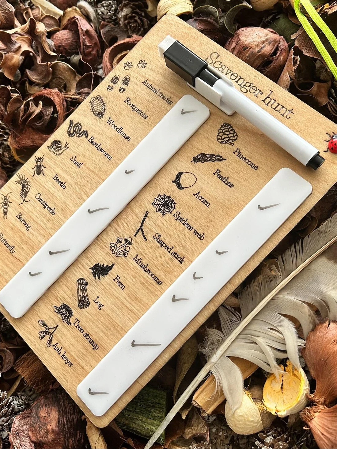 Littlelearnersfs – Personalised Scavenger Hunt Board. Make every outdoor adventure magical with our customisable scavenger hunt board, designed to spark curiosity and connection with nature. Whether you're exploring the woods, your local park, or your own back garden, this reusable board turns every outing into a playful learning experience.