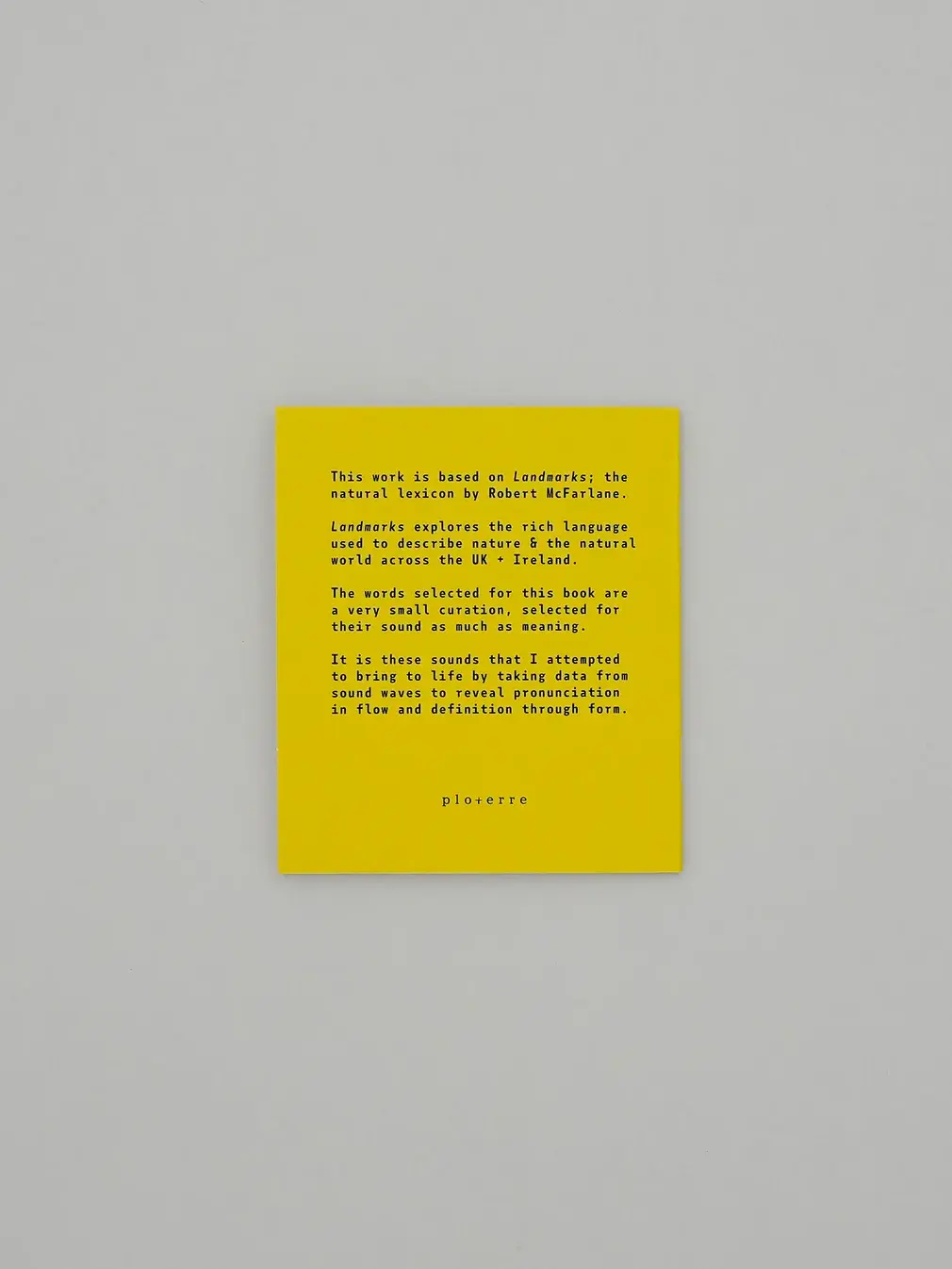Inspired by Landmarks, Robert McFarlane's book detailing the rich language that describes the natural world, I selected 26 words (one for each letter of the alphabet) to represent each word through data.