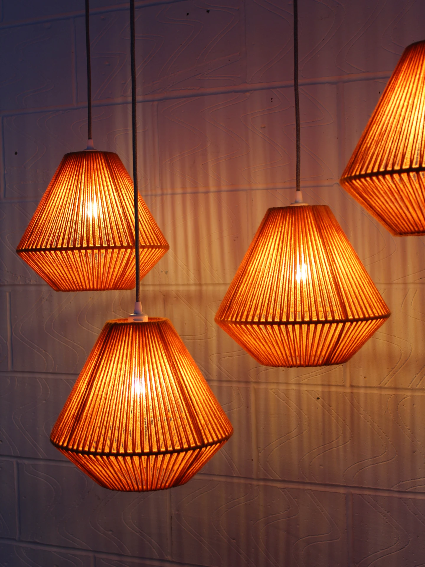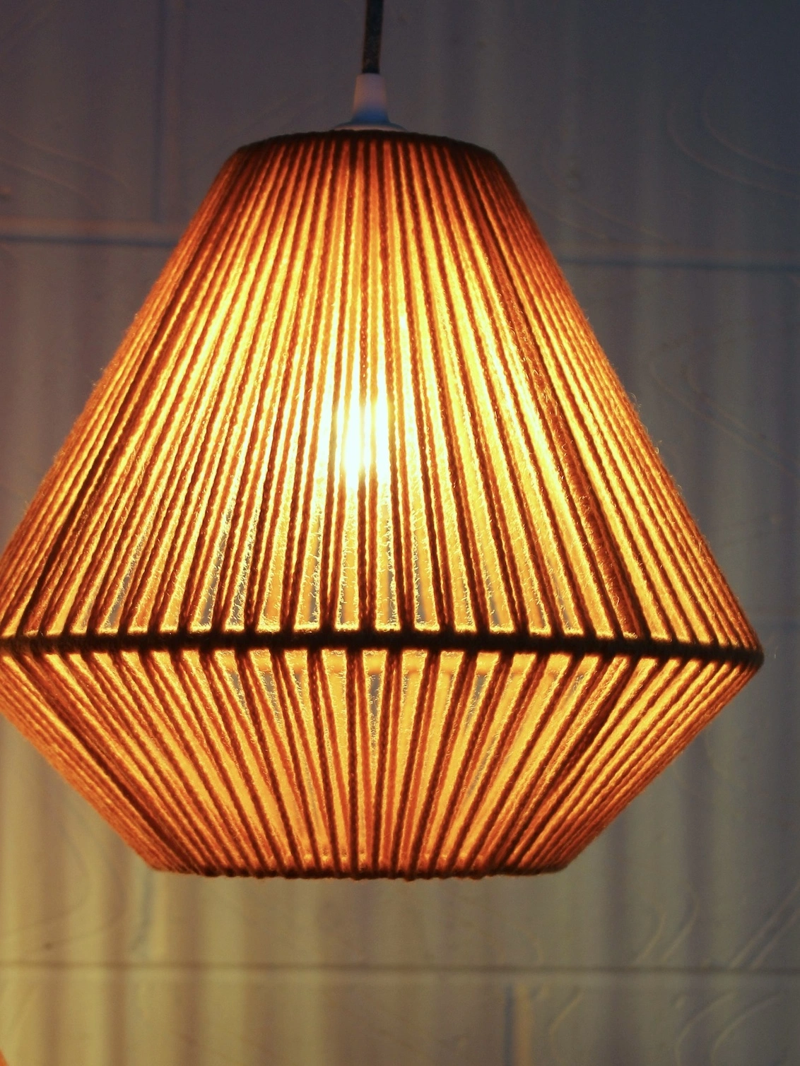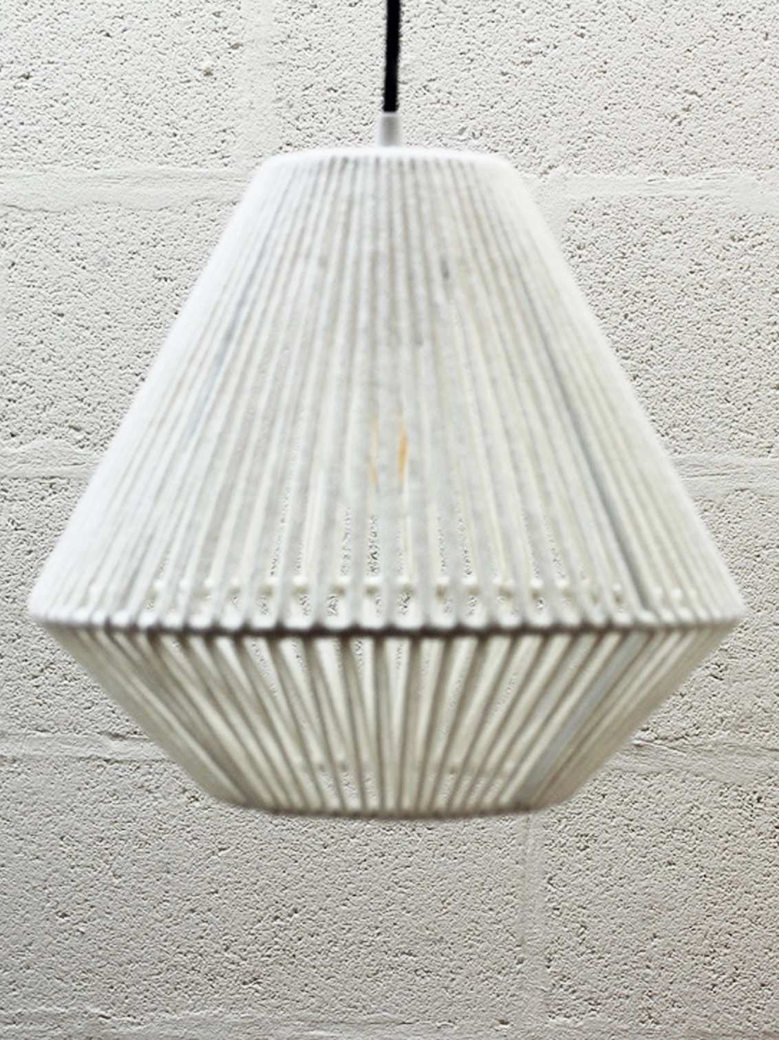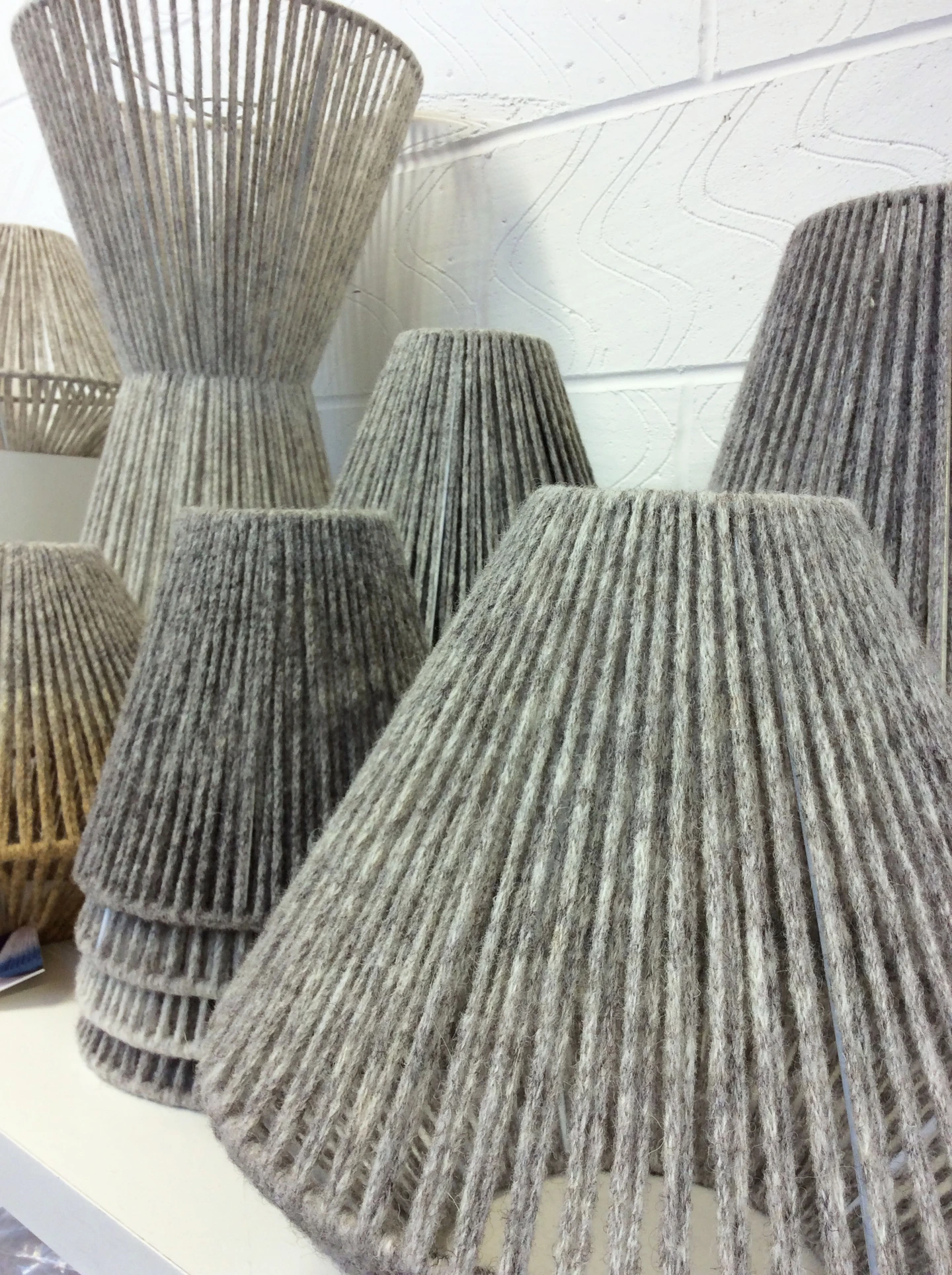 Our hand-made lighting is created using Merino, Pure New wool and British rare sheep breeds. We knit cord and wrap onto custom made copper coated steel with a white enamel coated wire frame.