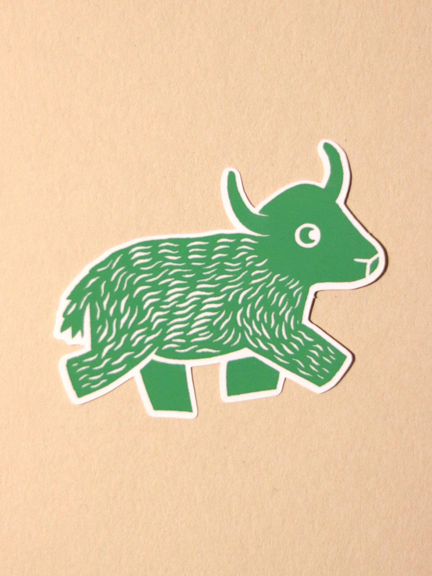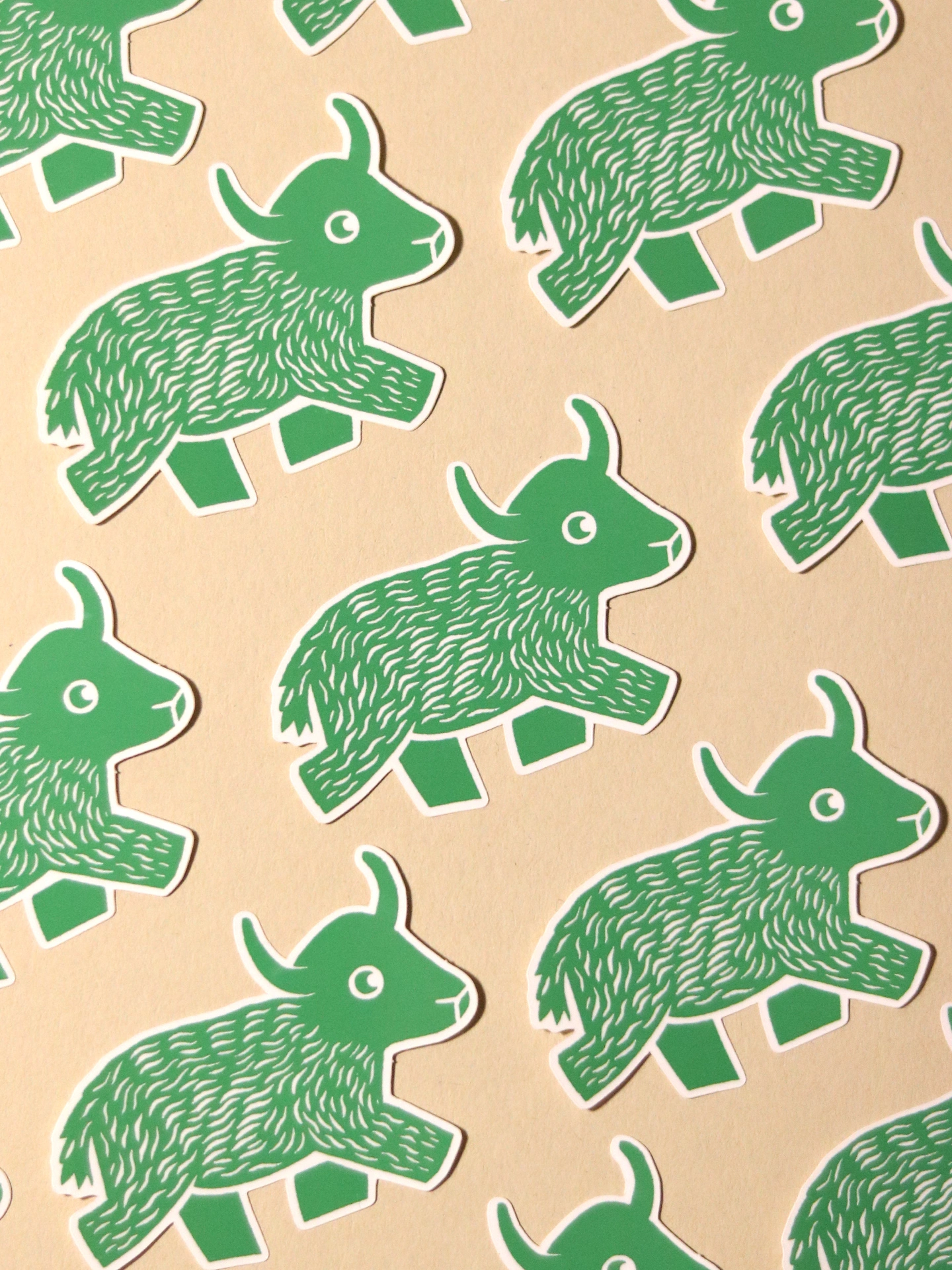 The design was originally a linocut print that I created for my Yak Of All Trails t-shirt. Linocut prints are carved by hand into sheets of linoleum, before being inked up and pressed onto paper or fabric.