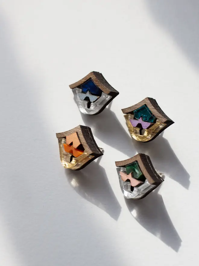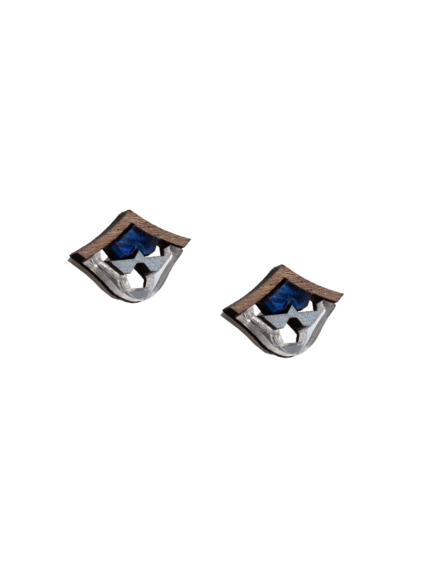 Material: Handmade from walnut, acrylic, plywood, sterling silver earring posts.