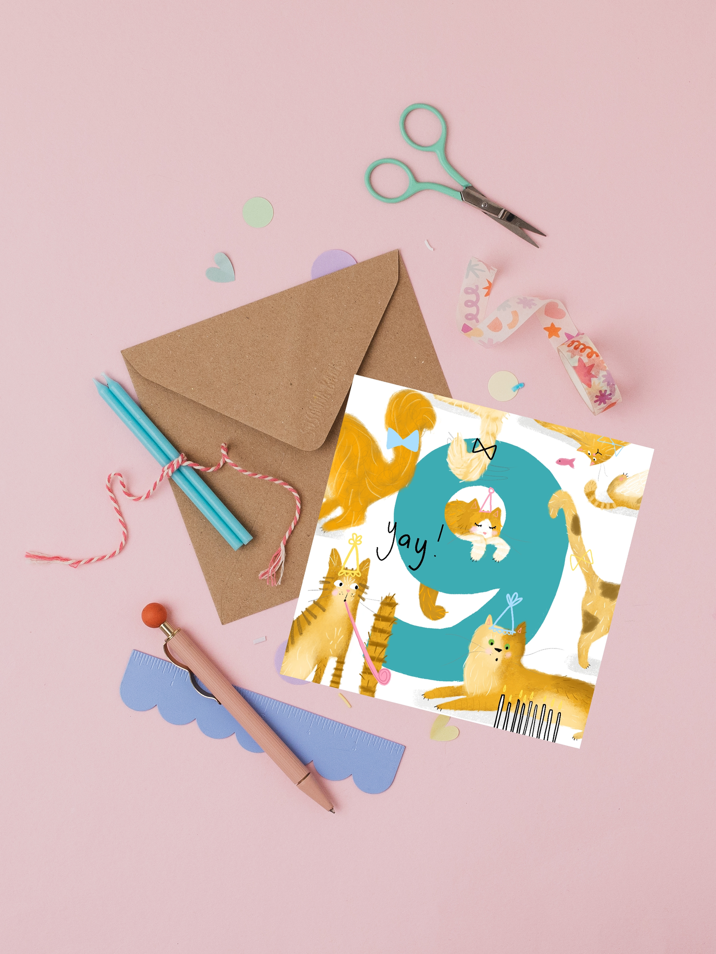 'Yay' Illustrated 9th Birthday Card