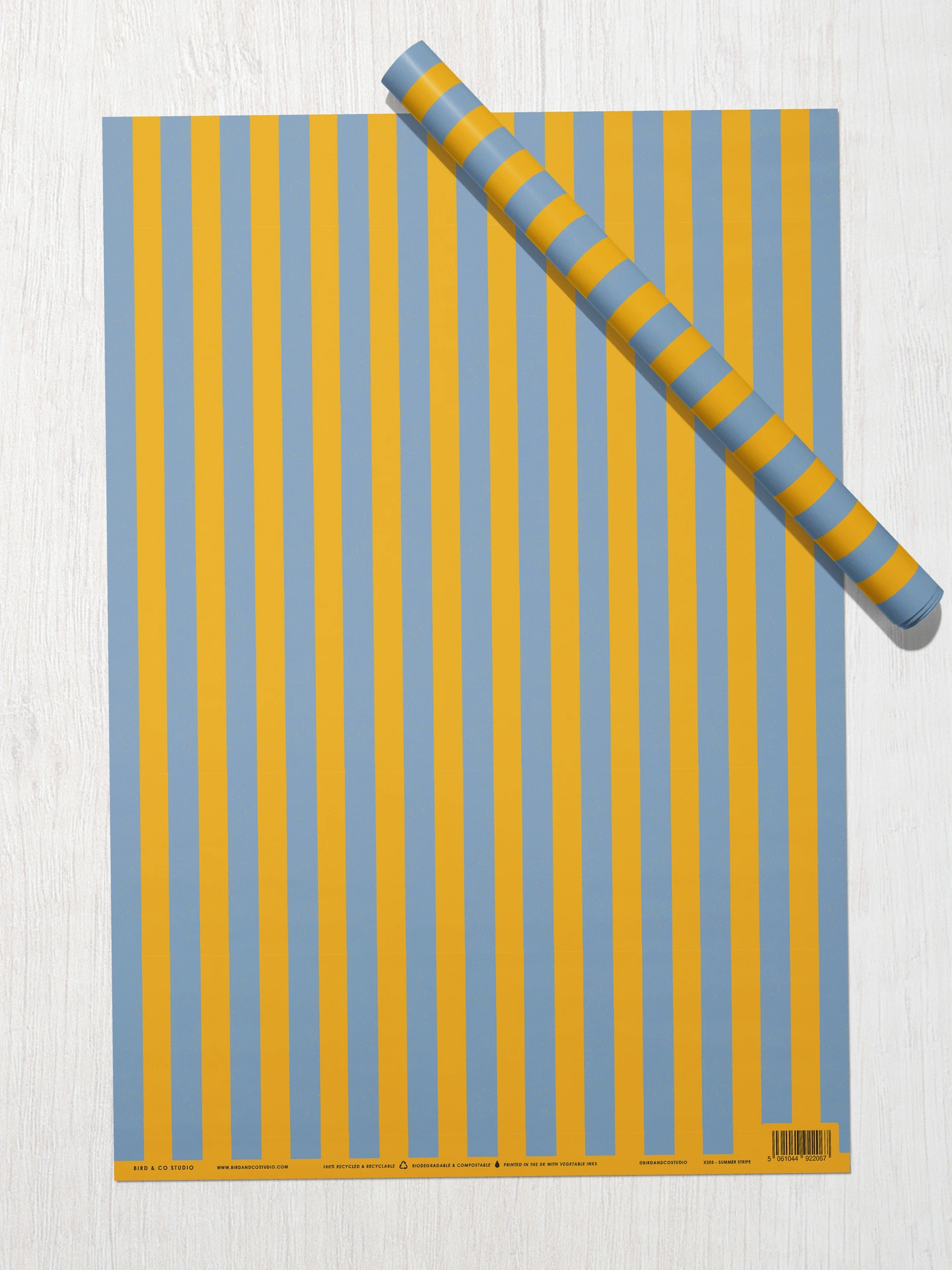 Yellow & Blue Stripe Eco Gift Wrap (1 Sheet)