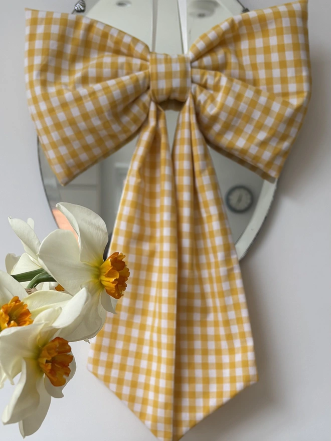 Yellow and White Gingham Oversized Bow