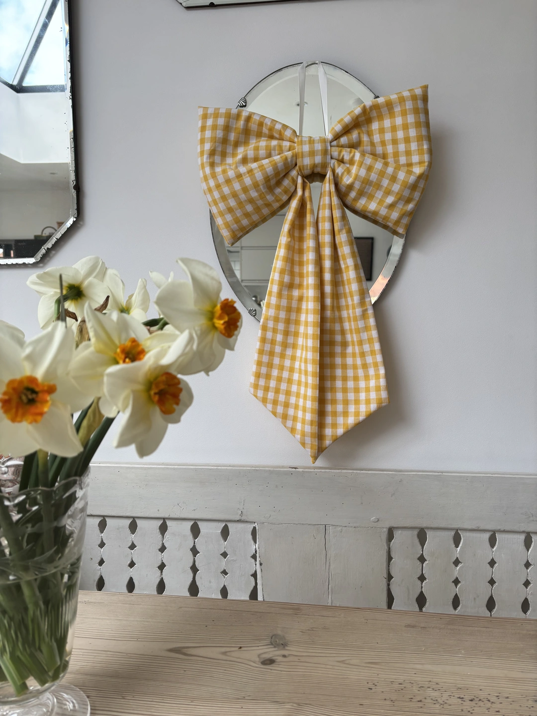 A beautiful oversized bow handmade from a gorgeous vibrant yellow gingham fabric. Perfect for your spring and Easter styling!!...