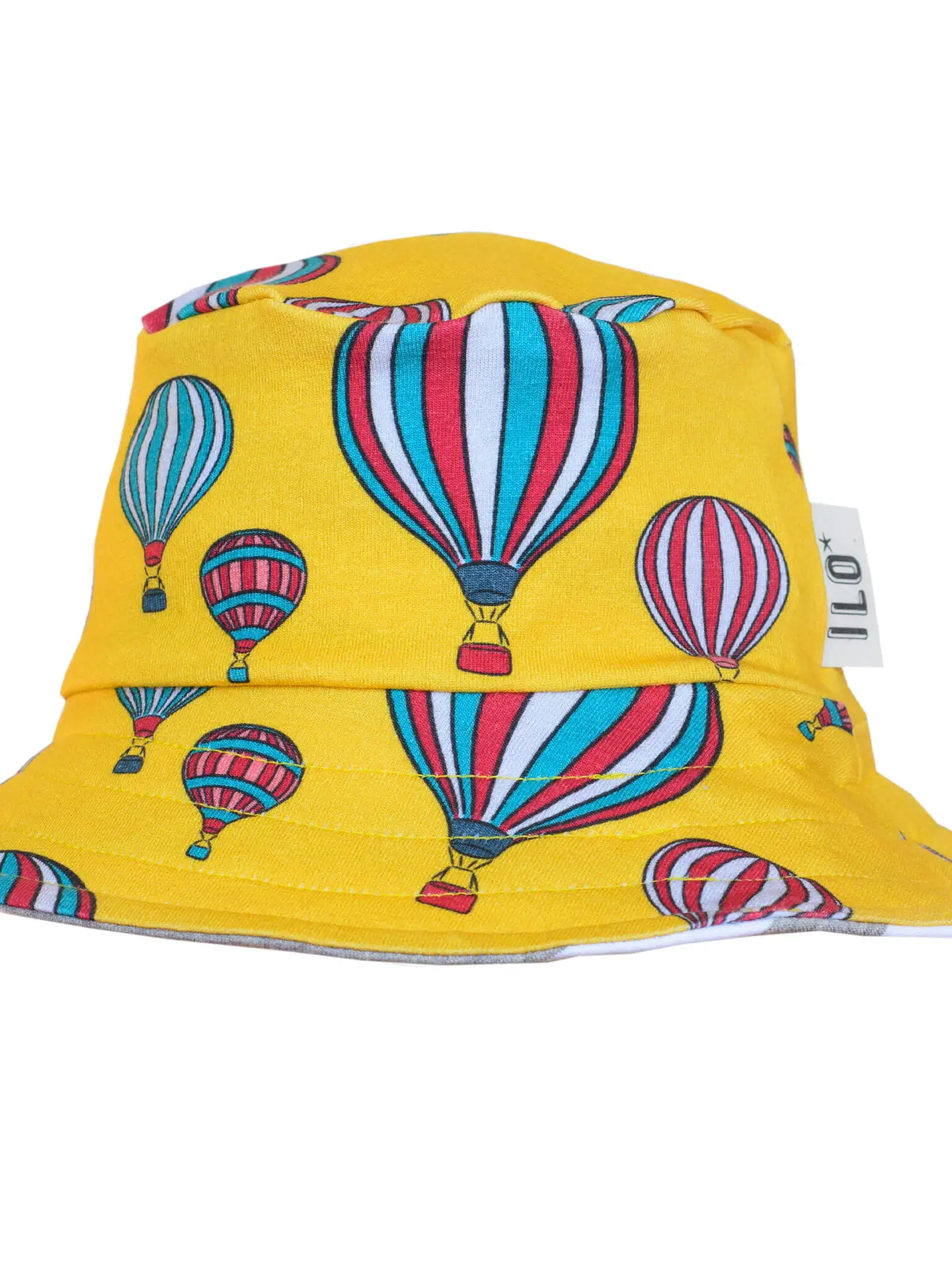 Introducing the Yellow Balloons Reversible Sun Hat - the perfect addition to your summer wardrobe! This hat is not only comfortable but also versatile with its reversible design. One side features a mint color while the reverse boasts a fun yellow stripe...