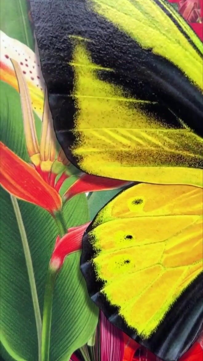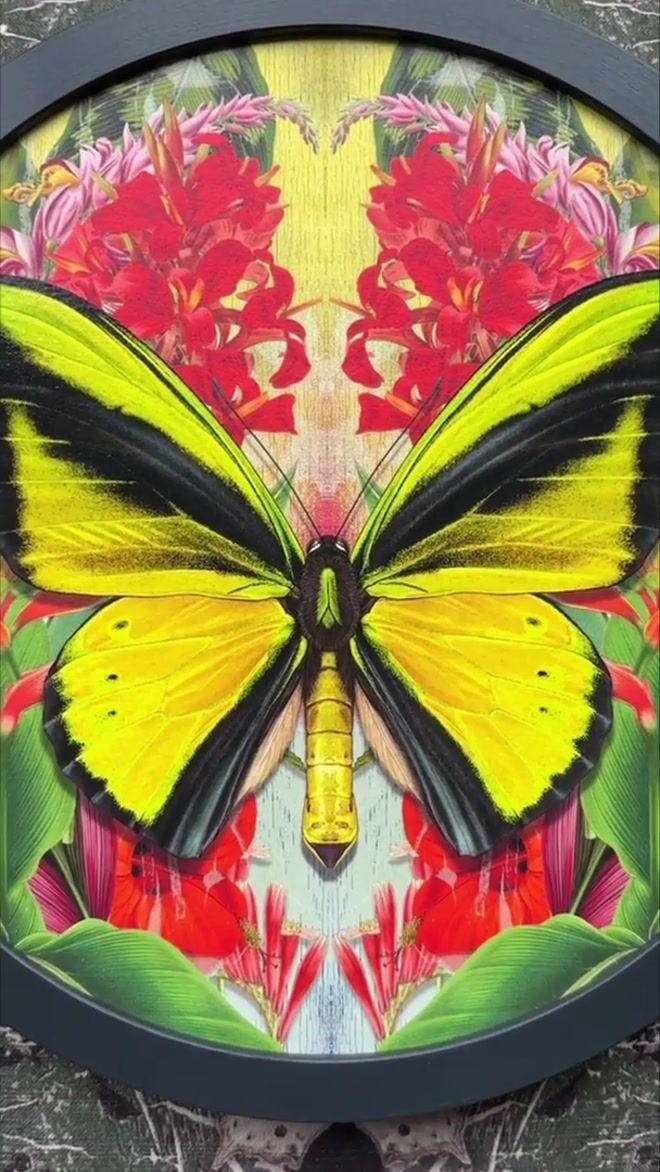 The Goliath birdwing is one of the largest butterflies in the world and sits centrally amongst a lush, symmetrical, tropical setting. A perfect artwork for nature lovers and for your special "Yellow"