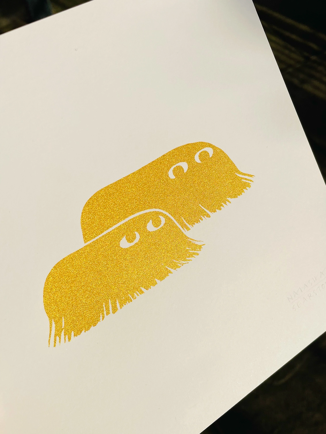 This handmade print includes free (optional) personalisation and features gloriously shiny gold ink that sparkles as it catches the light.