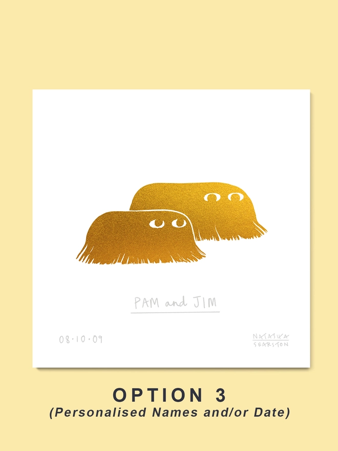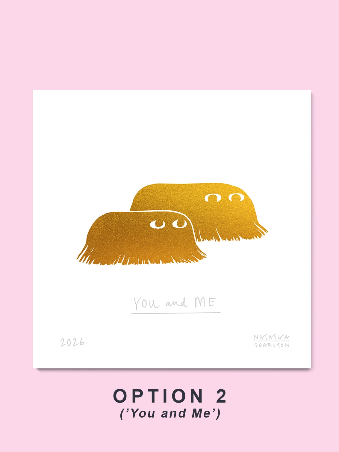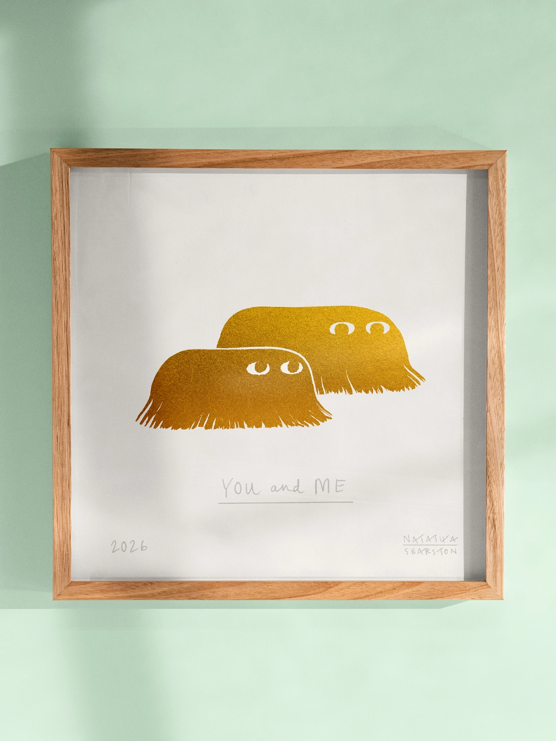 'You and Me' Personalised Handmade Screenprint (Gold)