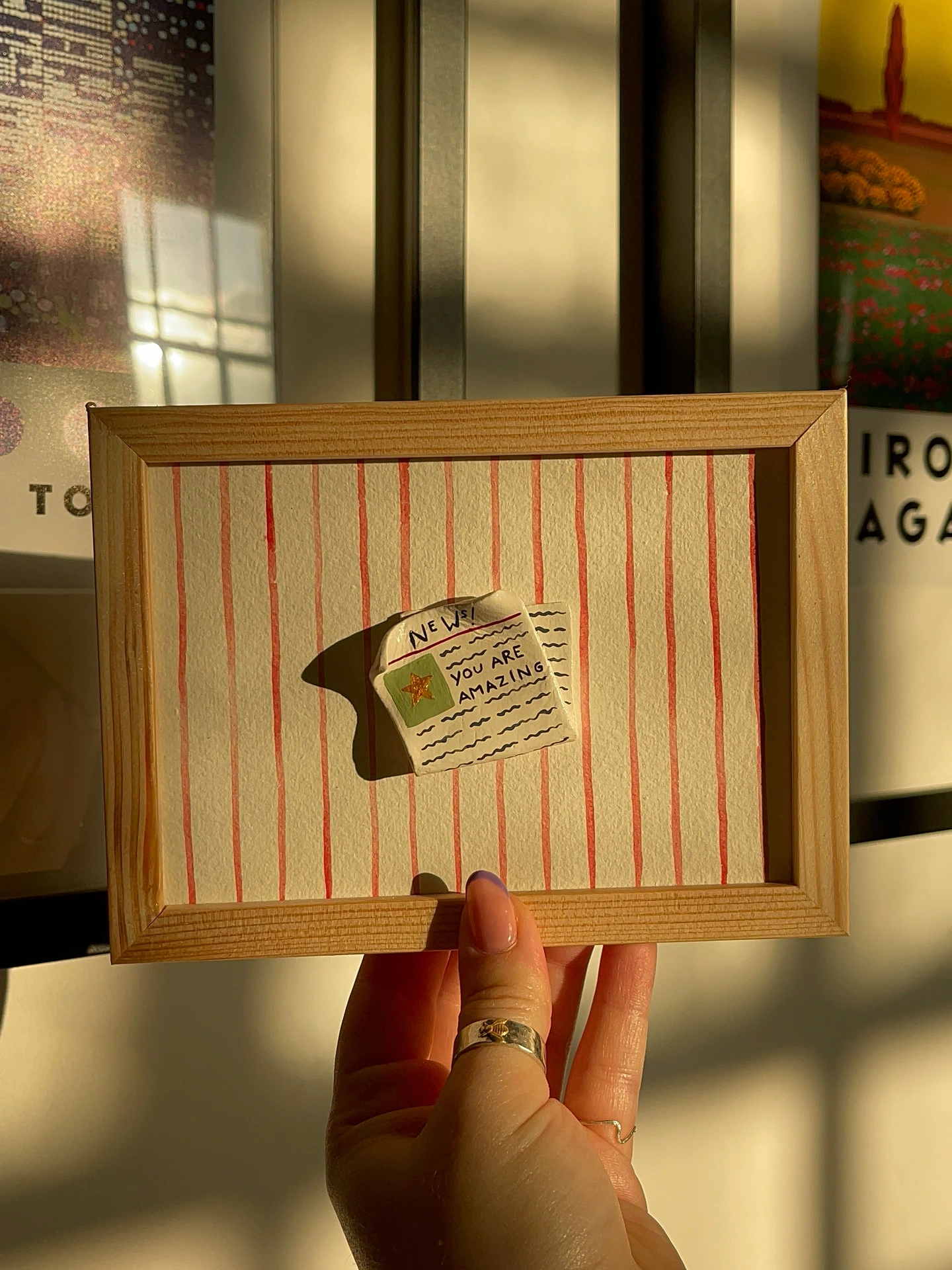 Frame is included, each newspaper is crafted and painted by hand - the whole piece will then be mounted onto handmade paper and secured within the frame