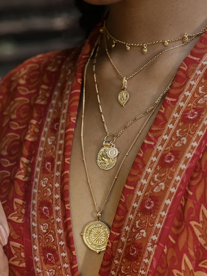 This pendant has been carefully crafted by a small team of marginalised artisans displaced from West Bengal, who have found sustainable livelihoods through their skill in making beautiful pieces like these.