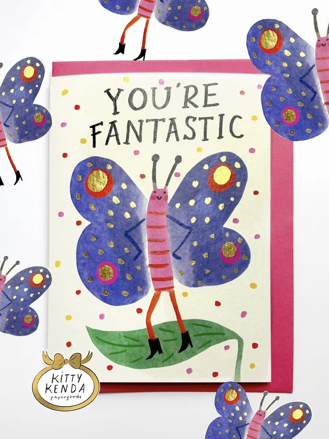 A gorgeous and joyful illustration, printed onto a textured 300gsm silk finish FSC certified cardstock with a foiled finish and back logo