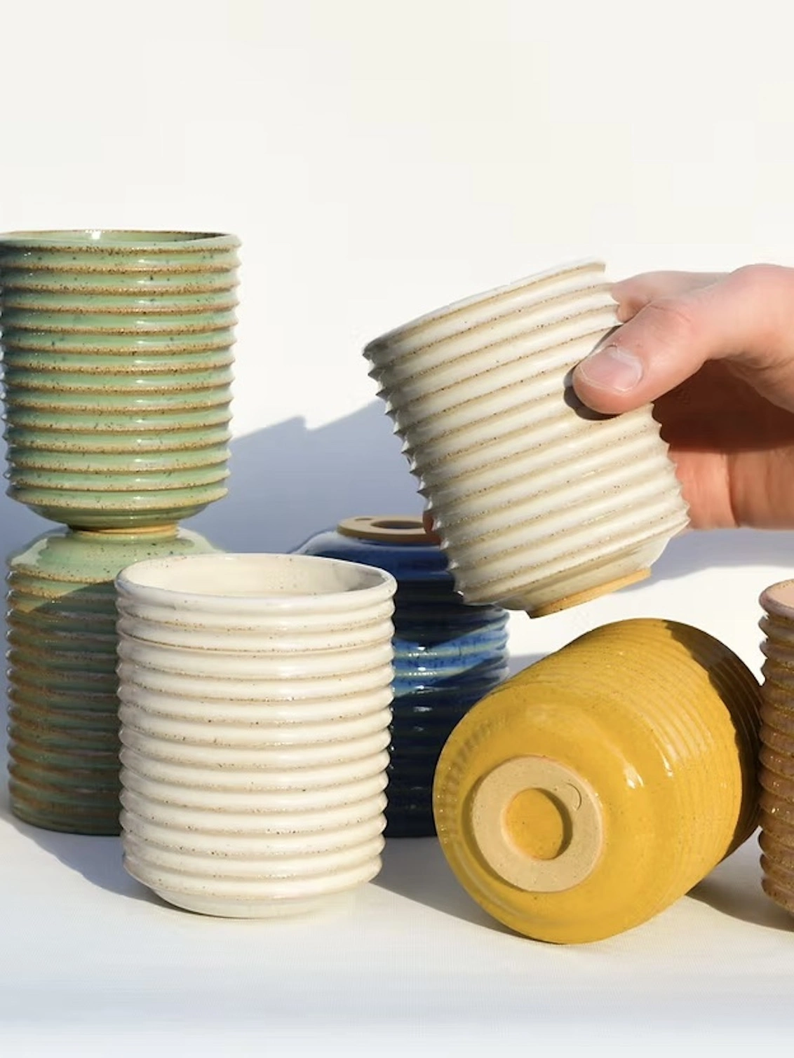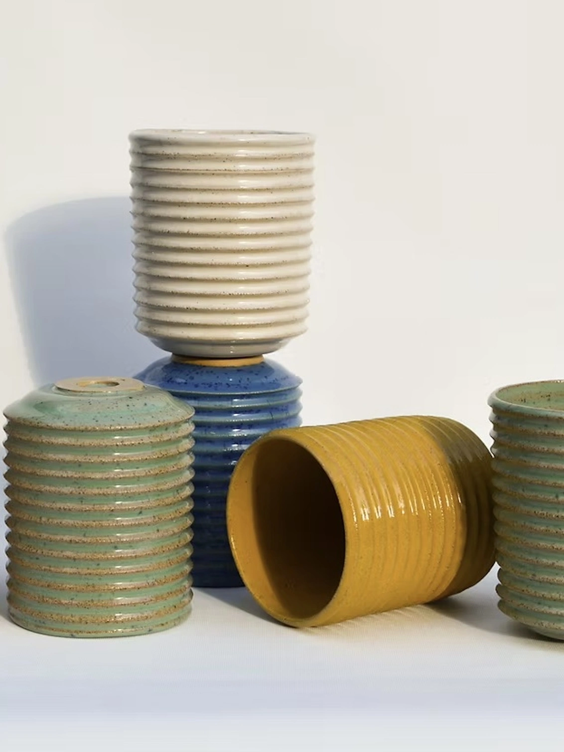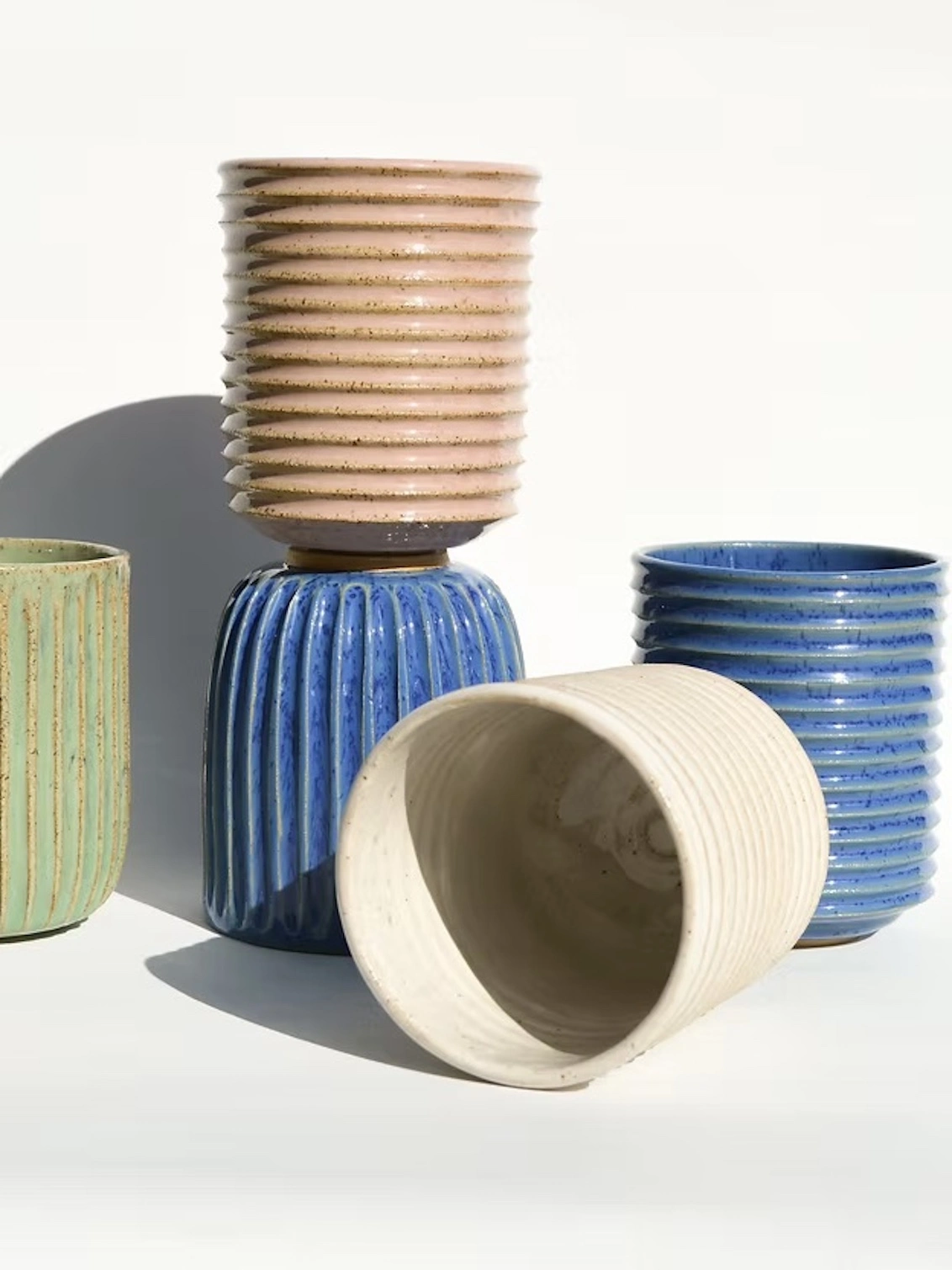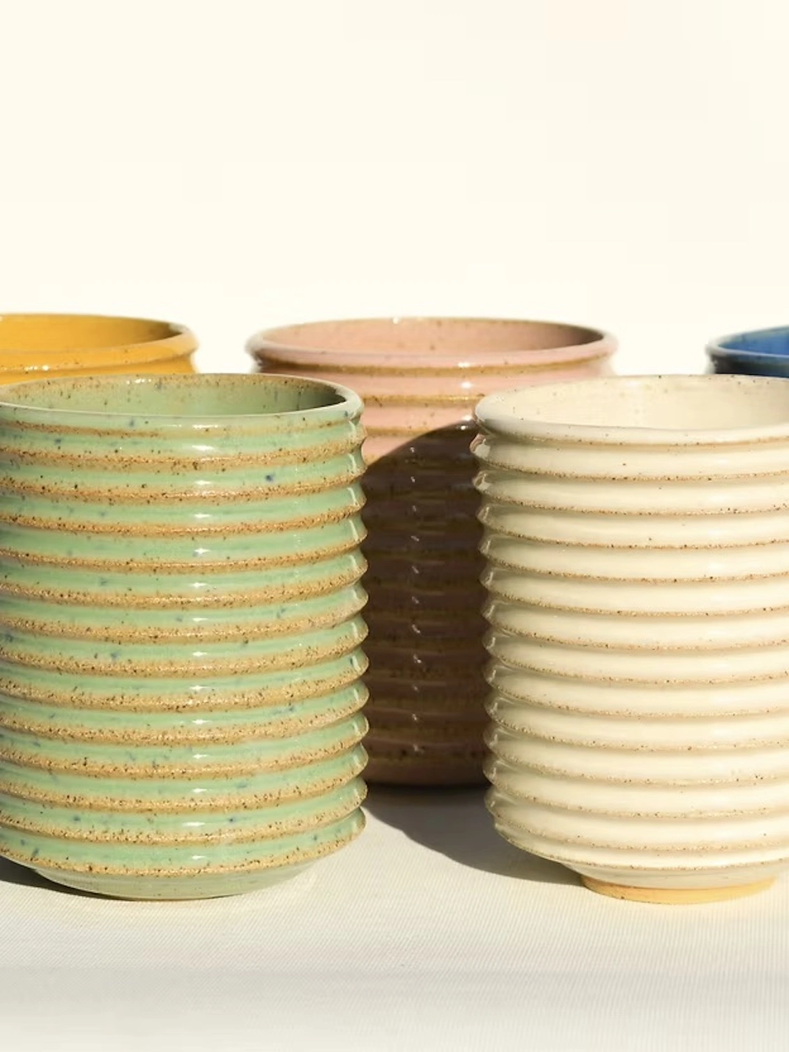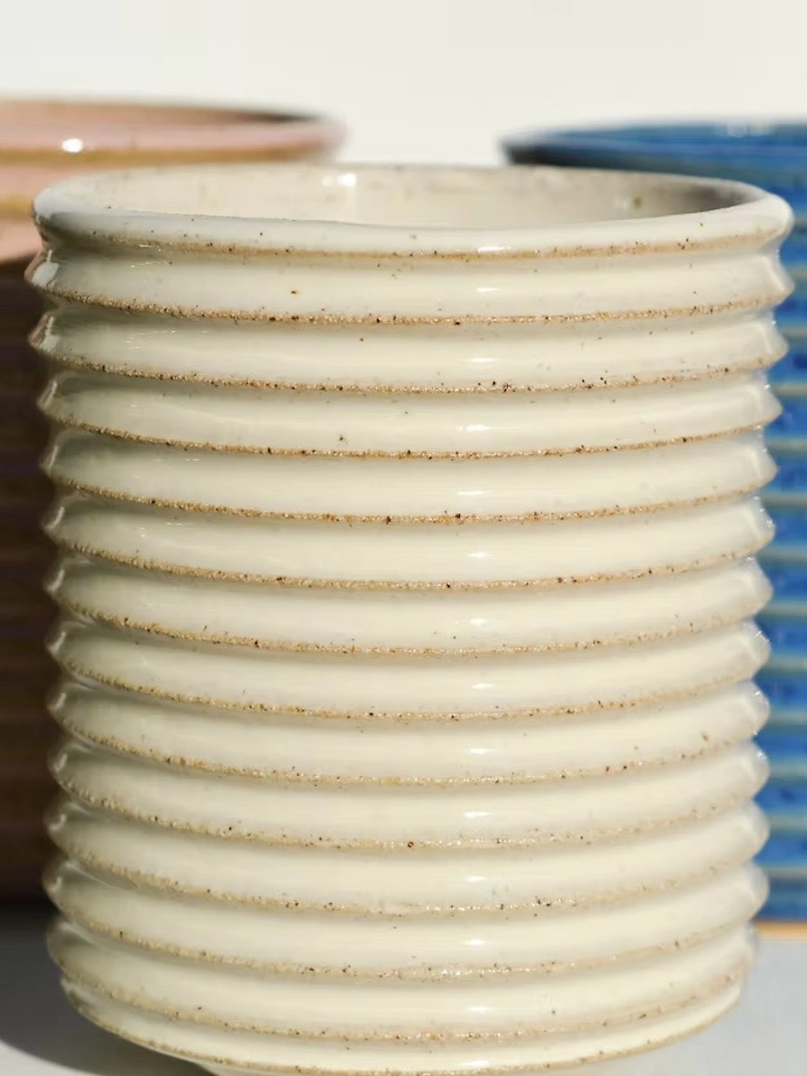 Zara is a small ribbed tumbler with a speckled glaze.