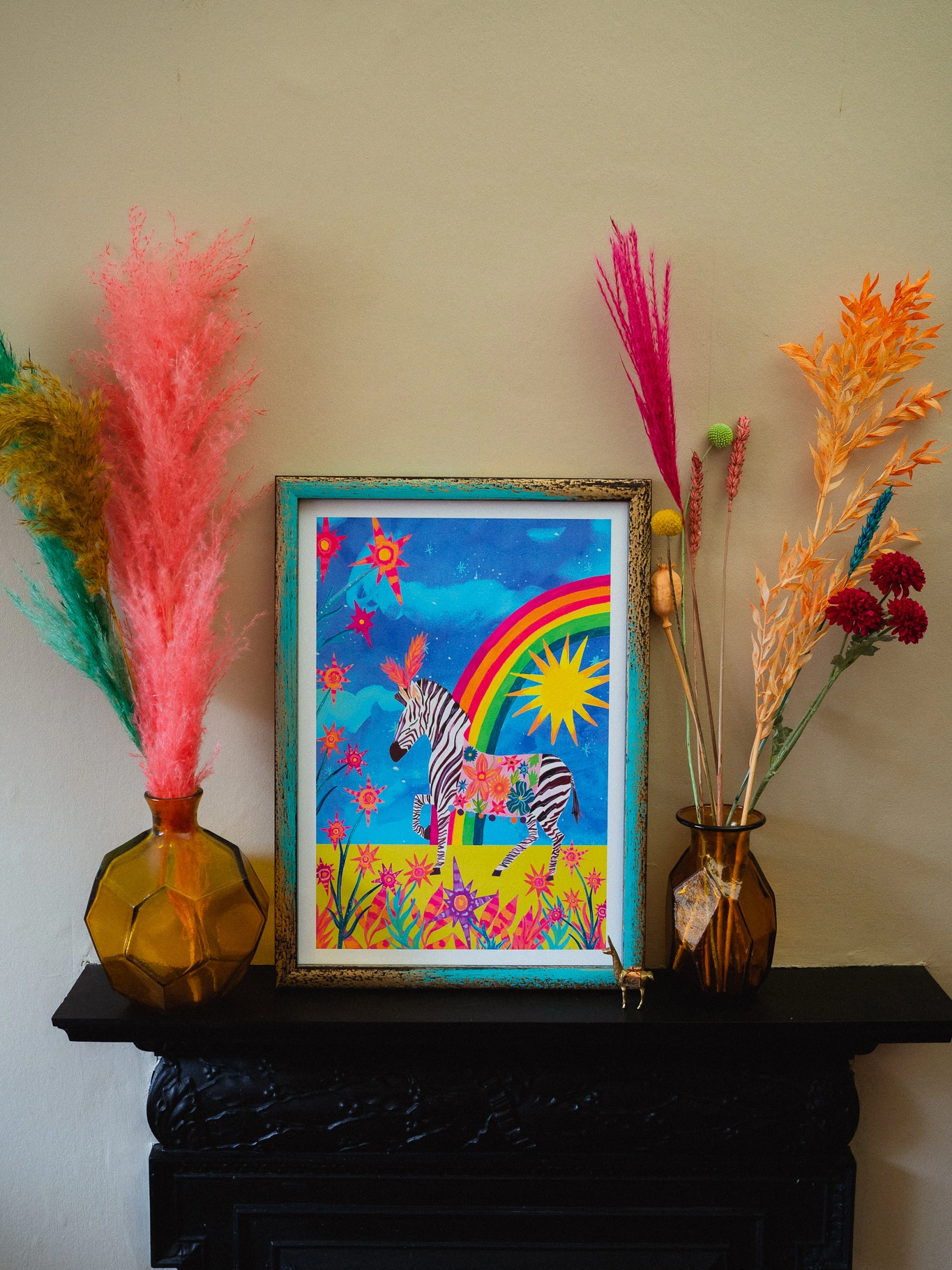 Zebra and Rainbow A3 Print