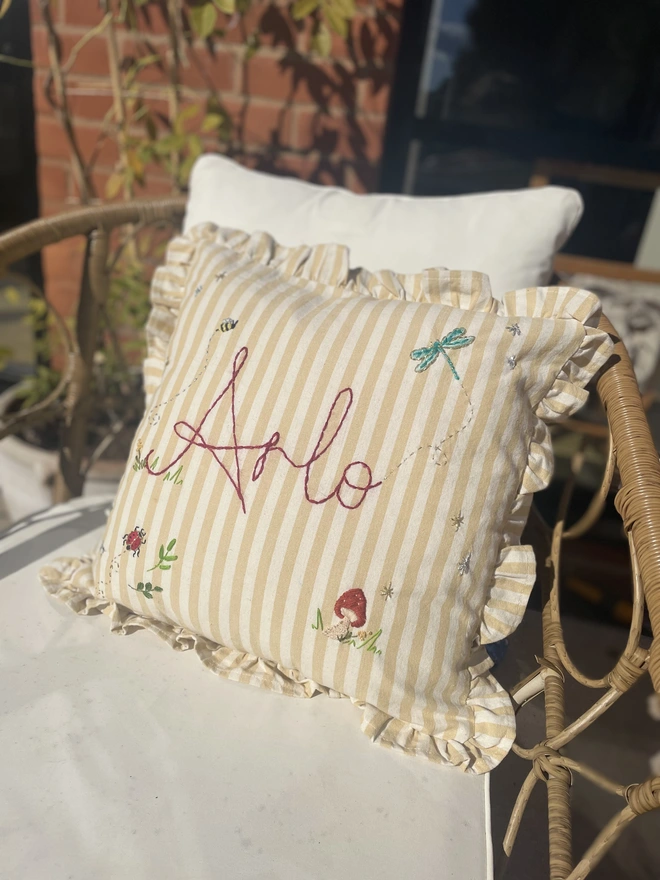 Bug & Minibeasts Themed Hand Embroidered Children’s Cushion