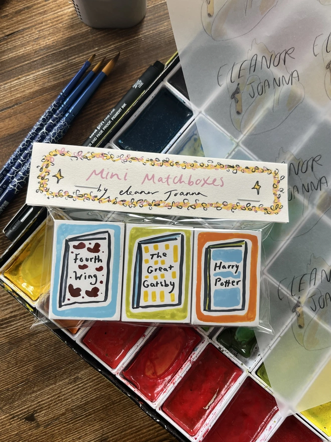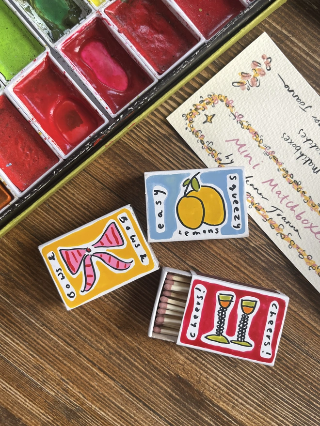 Each piece I create is handmade and reflects my signature themes, adding a unique and personal touch to everyday life. From quirky matchboxes to custom portrait cards or original portraits, I put care and thought into every item, making them perfect keepsakes or gifts.