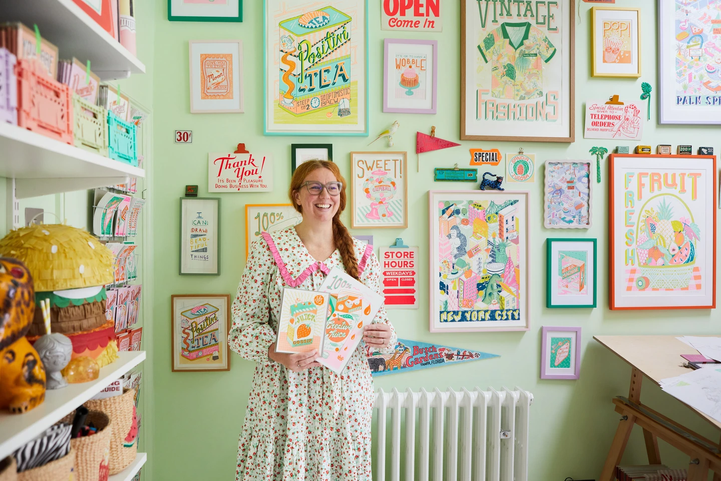 I specialise in creating explorable and playful prints and products that celebrate colour, optimism and creativity! All my products are proudly made in the UK from hand made Paper-mache pieces to Silk screen prints and Risographs fresh off a press in Margate, always colourful and always positive.