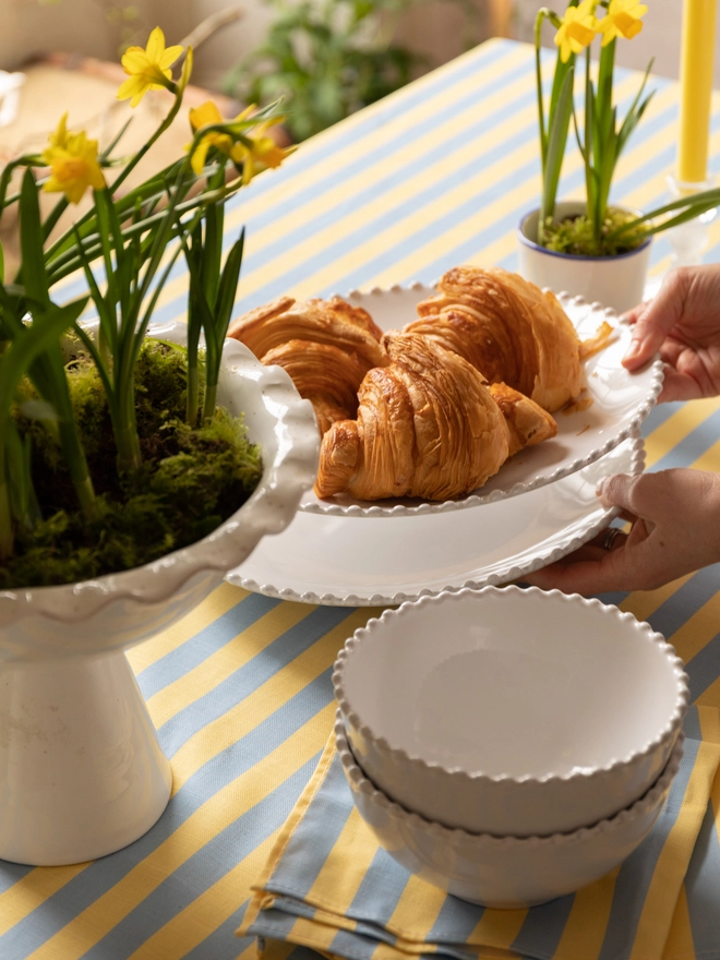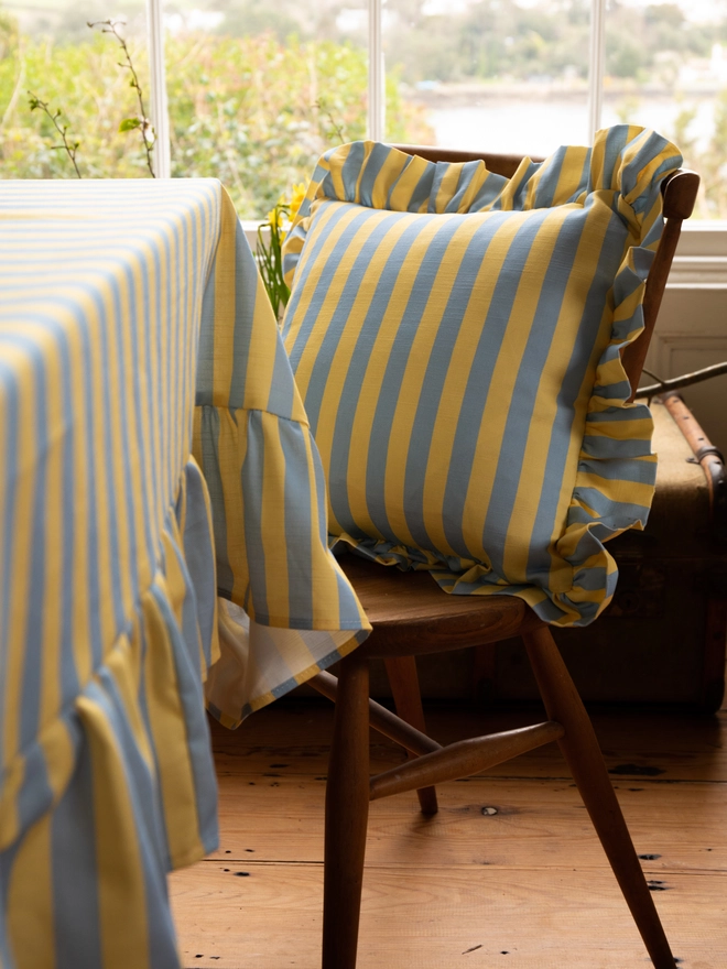 I adore blending chintzy Liberty fabrics with Gingham and Candy Stripes. The mish-mash of pattern and colour brings with it a joyful chaos. At Poppy and Honesty we like to use tip-top fabrics including Liberty of London Tana Lawn Cotton as well as Designers Guild Velvets and premium tumbled linens.
