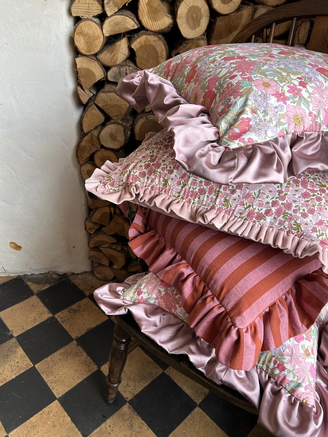 I adore blending chintzy Liberty fabrics with Gingham and Candy Stripes. The mish-mash of pattern and colour brings with it a joyful chaos. At Poppy and Honesty we like to use tip-top fabrics including Liberty of London Tana Lawn Cotton as well as Designers Guild Velvets and premium tumbled linens.