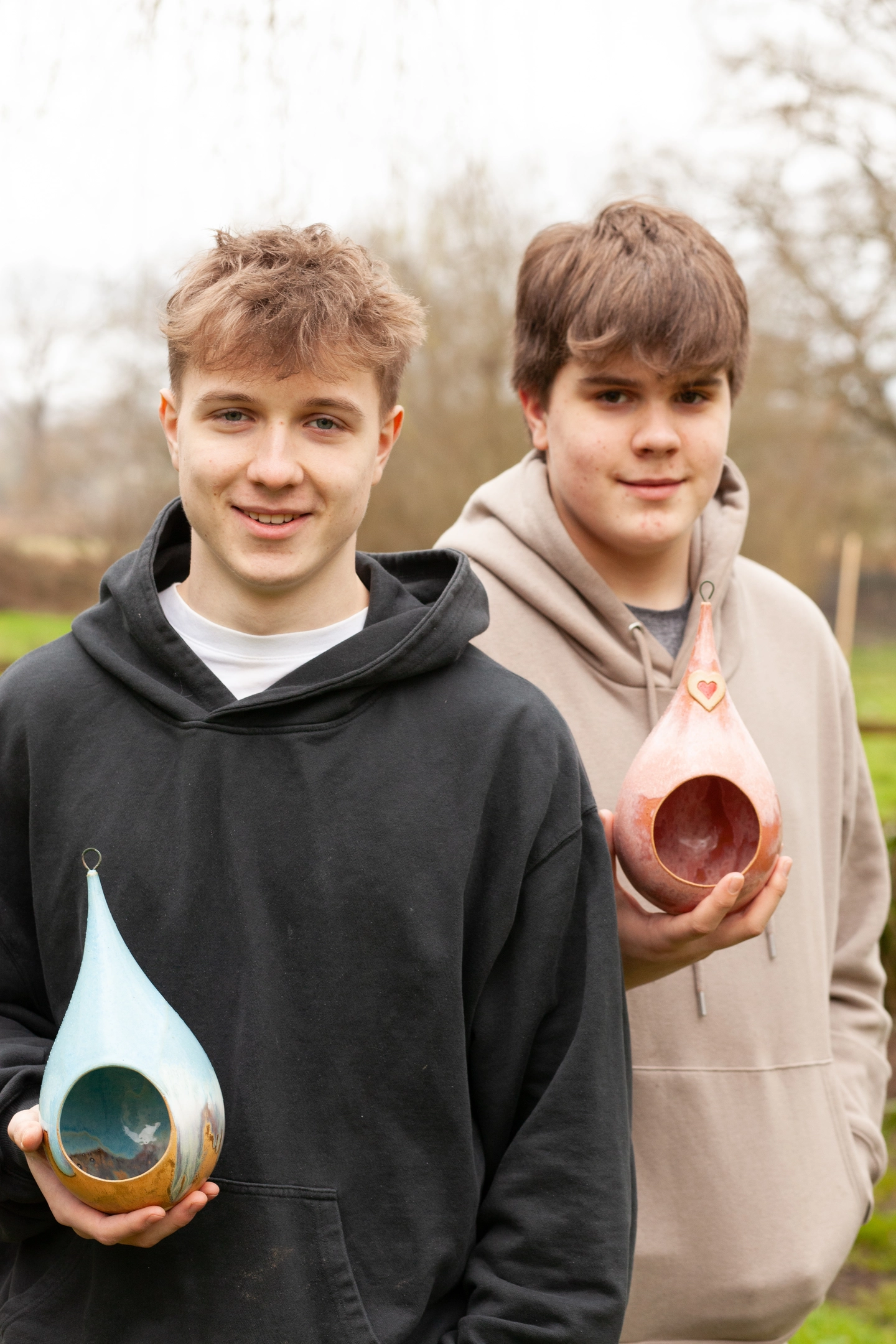 We are ‘The Bird Boys’ - George & Zac, two brothers who decided to set up a business selling handmade stoneware bird feeders when we were just 14 and 10 years old.